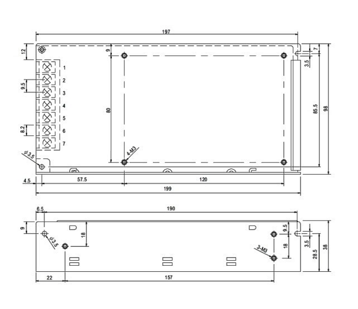 - Abmessungen: L: 197mm H: 38mm B: 98mm  ( siehe auch Zeichnung weitere Bilder )