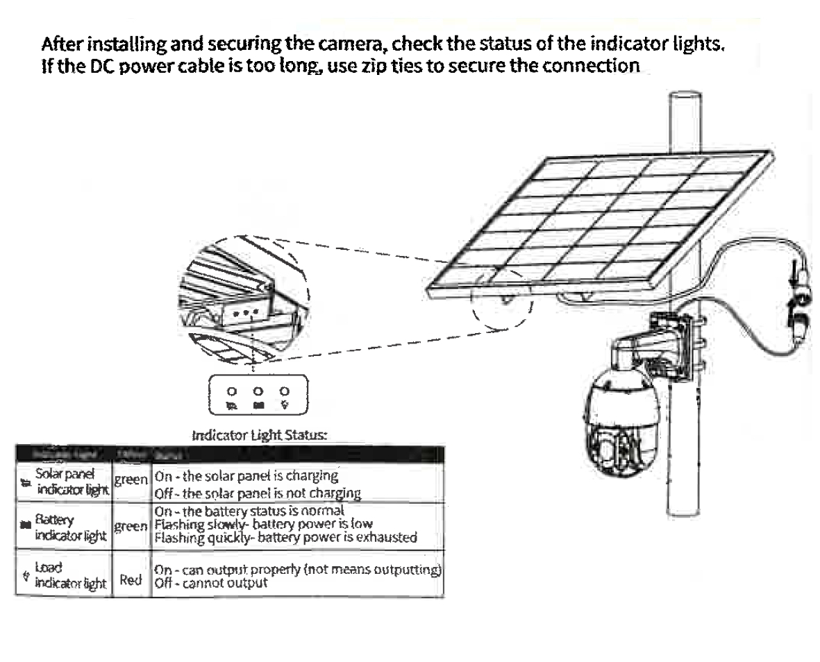 + Das System verfügt über integrierte Überwachungsanzeigeleuchten, die in Echtzeit Rückmeldung zum Betriebszustand von Solarmodulen, Lithiumbatterien und Geräten geben und so eine einfache Anzeige ermöglichen.