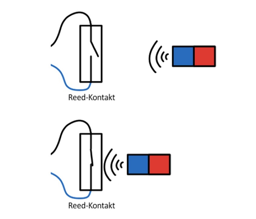 - Auszugehen ist ja immer davon das ein Fenster oder eine Tür meistens geschlossen ist ; dann ist also der Magnet und der Reedkontakt sehr nah zusammen !