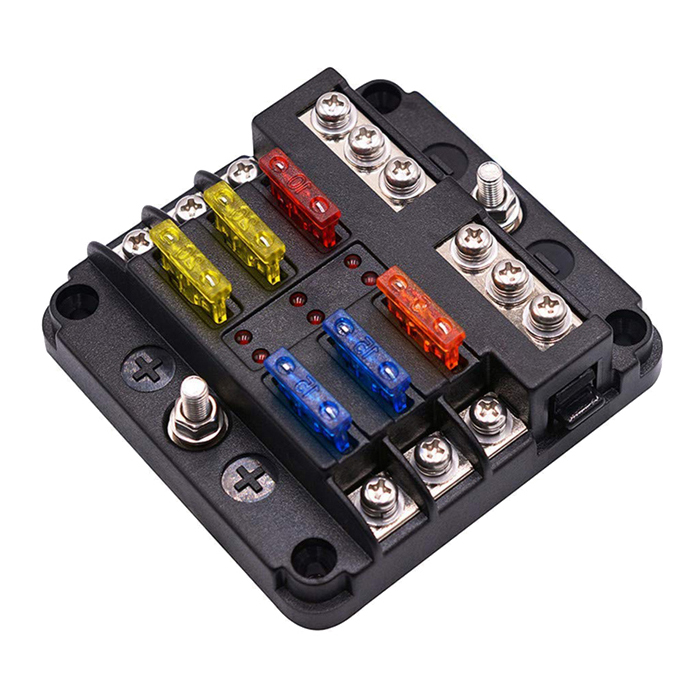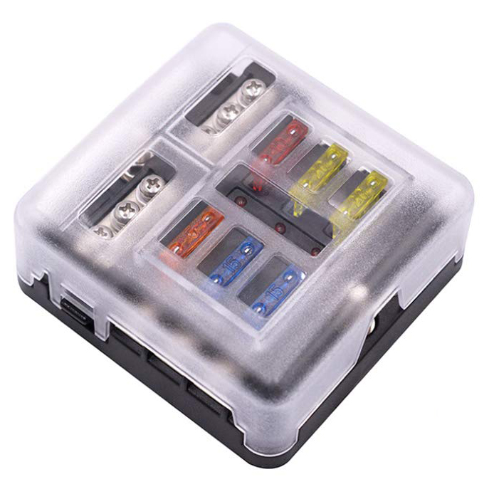Sicherungshalter 6-fach für KFZ ATC Sicherungen mit Status-LED Aufkleber und 12 ATC Sicherungen