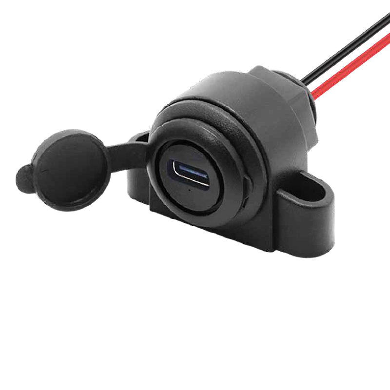 USB-C Ladegerät als Aufbau oder Einbaubuchse mit Klappdeckel Input 12-24V über Litzenkabel