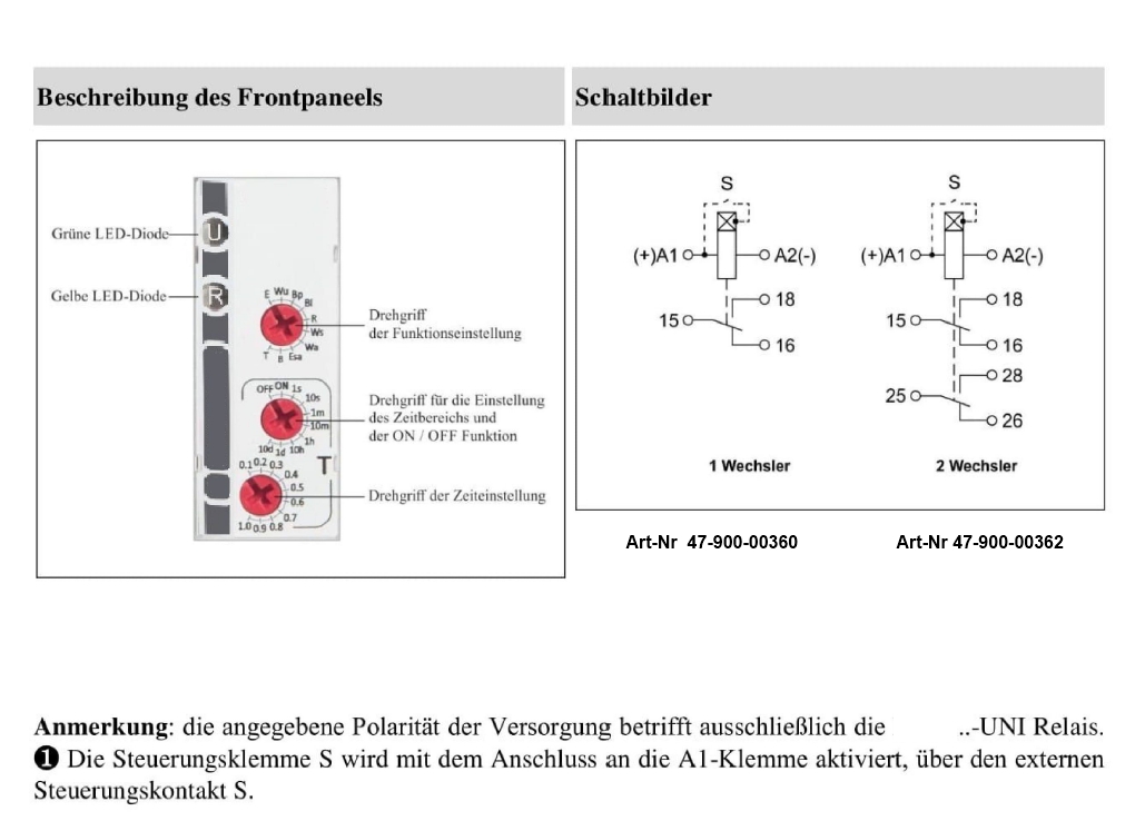 Neu = nun auch mit 1x Wechslerkontakten erhältlich = Art-Nr 47-900-00360