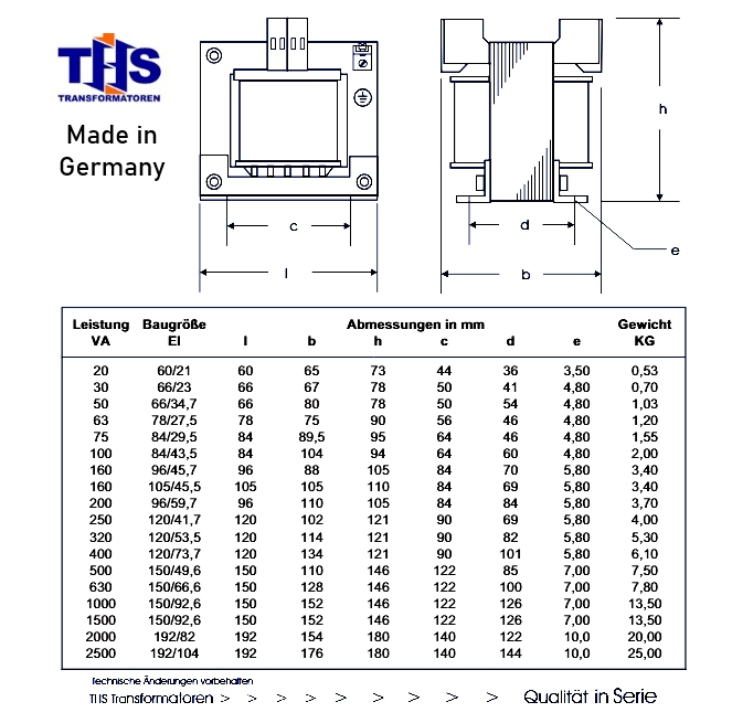 + IsolationsklasseT40/E. nach Norm gefertigt 0570 / EN61558