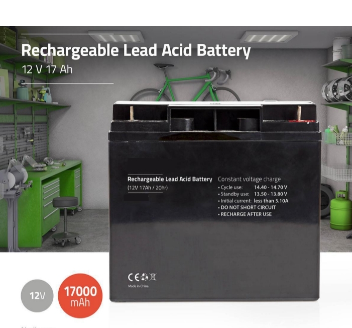12V 17Ah Bleiakku wartungsfreier AGM Akku Rechargeable Lead Acid Battery Nennspannung: 12Volt Kapazität: 17Ah = 17.000mAh Cycle Use 14,40..14,7V Standby Use 13,50 ... 13,8V kein Gefahrengut Tiefentladesicher, auslaufsicher lageunabhängig zu betreiben Abmessungen: L:181mm T: 77mm H:167mm Anschlusszapfen Innenbohrung innen 5,3mm als Querloch Gewicht: 4,961kg Zusatzinformation: Ideal auch für den Einsatz in USV von APC und etliche andere Hersteller. Oft sind 2x12V Zellen als 24Volt Block verarbeitet (siehe weitere Bilder)