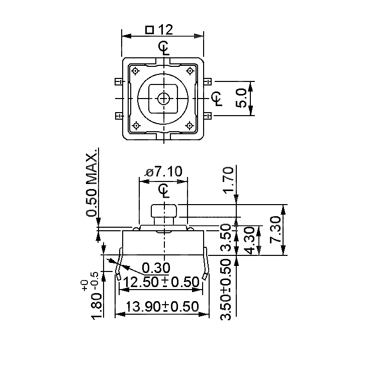 Produktinformationen "Taster Minitaster Platinentaster liegend 12x12mm mit Knebel"
