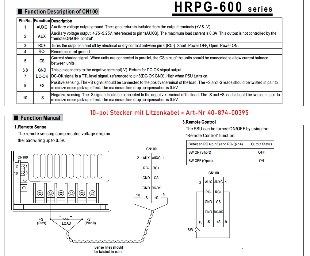 - für Meanwell Serie Netzteile mit 10pol Stecker mit für Remote, Sens und Brückung von mehrer Netzteilen selber Bauart