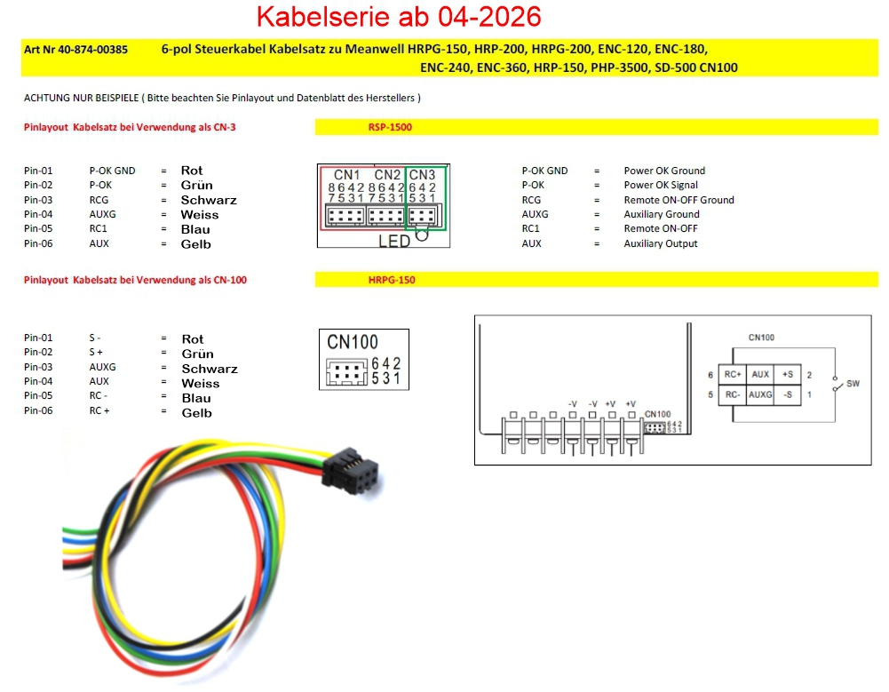 Kabelkit SYNCKABEL 6pol Steuerleitung für MeanWell CN3 CN5 CN100 6pol Stecker zur Netzteile Serie