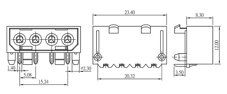 - 4-polig Raster 5,08mm mit Stiften (male)