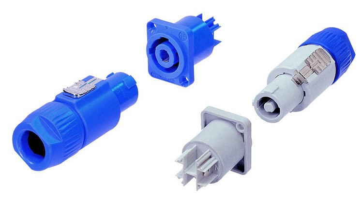 Das PowerCon ist ein neues, verriegelbares Netzsteckersystem (20A, mit voreilender Schutzerde), das vor allem im professionellen Audio- u. Videobereich, bei Messgeräten, Computern, Lichtsystemen und in der Industrie eingesetzt wird