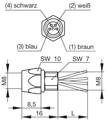 - Einbaugewinde M8 x 0,5 Metallgehäuse