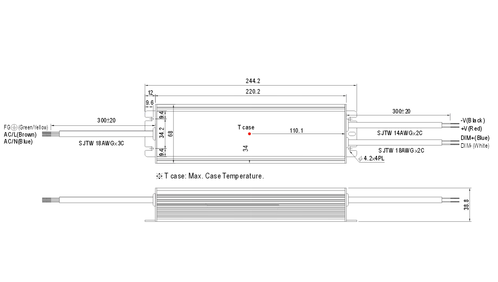 24V 100W Netzteil für universelle Verwendung Eingang 230VAC Universaleingang 90-264VAC Konstantspannung am Ausgang nicht dimmbar Kunststoffgehäuse IP67 Überlastschutz durch Abschalten, auto recovery geschützt gegen Kurzschluss, Überlast, Überspannung fixierte Ausgangsspannung Sicherheitsnormen: UL 8750; EN 62368-1; IEC 62368-1 EMV Normen: EN 55032 Klasse B Schaltnetzteil nach IP67 Norm mit Ausgangsspannung von 24V stabilisierter Gleichspannung. Geeignet als 24V Stromversorgung für industrielle Anwendungen, Schaltschrankbau als LED-Converter, Beleuchtungstechnik, Messebau usw. Belastbarkeit: 100 Watt an 24 Volt = 4,2A. Kurzschlussabschaltung mit automatischem Wiederstart (Restart). Übertemperaturschutz mit Leistungsreduktion. Technische Daten: Eingang: typisch 230Vac (90...264Vac Netzfreq. 47-63Hz) oder 127-370Vdc Sekundärspannung 24Vdc stabilisierte Gleichspannung Ausgangsleistung: max. 100Watt Belastbarkeit Strom: 0-4200mA = 4,2A an 24Vdc RippleNoise: 150mV Wirkungsgrad > 88% Überspannungschutz Ausgang : 27,6...32,4V Betriebstemperatur ta -25 bis +70 °C Solides SlimeLine Kunststoffgehäuse Anschlusskabel Primär: ca. 30cm Kabel 2 x 0,75mm2 (flexibel) und Sekundär: ca. 30cm Kabel 2 x 0,5mm2 (flexibel) Rot=(+) / Schwarz = (-) Abmessungen siehe auch Zeichnung weitere Bilder Abm.: L:190mm ( Länge mit Tülle: 204mm ) Länge mit Kabel 215mm / B:52mm H:37mm Befestigungslochabstand = 186mm / Bohrung: 4,5mm Gewicht: 630-Gramm Erfüllt Normen : Schutzklasse II ( 2-Quadrate ) Isolations Widerstand : 100Mohm / Withstand Voltage I/P-O/P 3KVAC Sicherheits-Standards: UL8750, CSA C22.2 No 250.13-12, UL879,CSA C22.2 No.207-M89,BIS IS15885 , EAC TP TC 004,IP67; IEC/BS EN/EN 62368-1 approved. EMC-Emmision : Compliance to BS EN/EN55032 (CISPR32) Class B, BS EN/EN61000-3-2 Class A(≤80% load), BS EN/EN61000-3-3, EAC TP TC 020 EMC Immunity Compliance to BS EN/EN61000-4-2,3,4,5,6,8,11; BS EN/EN55024, light industry level, criteria A, EAC TP TC 02 Passende Steckverbinder und Zubehör im Outdoorbereich wäre da unsere optionale Empfehlung Bst Nr 39-855-03010 = 3pol. Wieland Gesis M-Buchsenteil Bst Nr 39-855-03000 = 3pol. Wieland Gesis M-Stecker Bst Nr 39-855-00150 = 4pol. Kupplung 16A Hirschmann Bst Nr 39-855-00140 = 4pol. Stecker 16A Hirschmann oder zum direkten verbinden der Kabelage z.B. mit WAGO Klemmen und Gelmuffe ( ggf. unter Suche eingeben ) oder auch Bst Nr 52-625-00850 = IP65 Kunststoffgehäuse 250x160x92mm Macrolon mit Dichtungslippe oder auch Bst Nr 52-625-00840 = IP65 Kunststoffgehäuse 220x165x60mm ABS-Kstst. mit Dichtungslippe oder auch Bst Nr 52-625-01340 = IP65 Kunststoffgehäuse 265x185x95mm ABS-Kstst. mit Dichtungslippe oder auch Bst Nr 52-625-00860 = IP43 Kunststoffgehäuse 250x180x50mm oder auch Bst Nr 52-625-01960 = Verteilerkasten Wandgehäuse 300x150x132mm oder auch wasserfeste Schrumpfschläuche mit Innenkleber können verwendet verwendet z.B. Bst Nr 42-690-00442 oder Bst Nr 42-690-00444