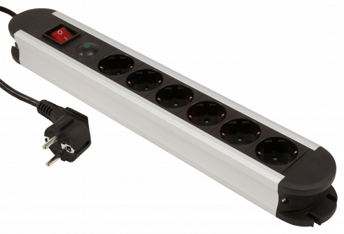 9-fach Steckdosenleiste mit Netzschalter anschraubbar befestigbar Mehrfachsteckdose Schutzkontakteiste CONNECTUS anschraubbar befestigbar Steckdosenleiste 9-fach Schutzkontaktsteckdose schwarz Kunststoffprofil, silber, schwarze Endkappen mit Kinderschutz Material (Gehäuse) Kunststoff / Aluminium mit 2-poligem Wippschalter Kabel = 2m H05VV-F3G1,50qmm Steckdosen 35° gedreht 2 poliger Schalter, orange beleuchtet Belastbarkeit : 220-240VAC 250VAC max. 16A max 3600W Abmessungen: L: 570mm 72x49mm